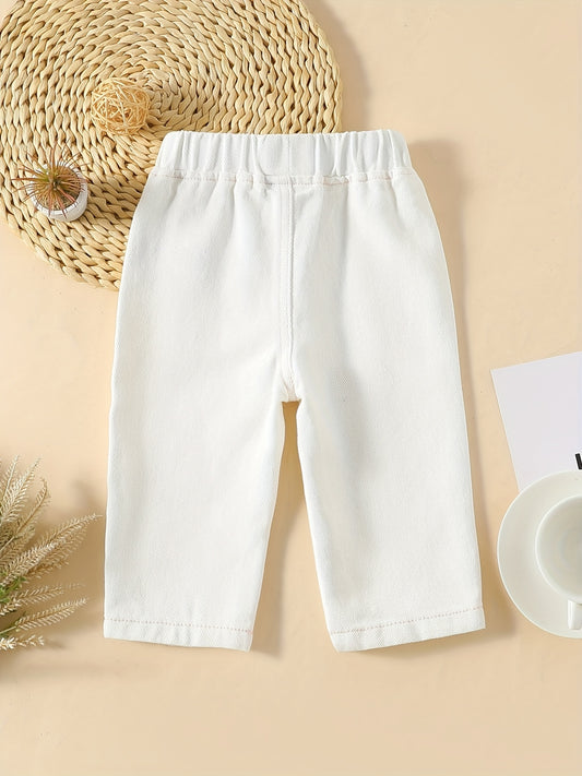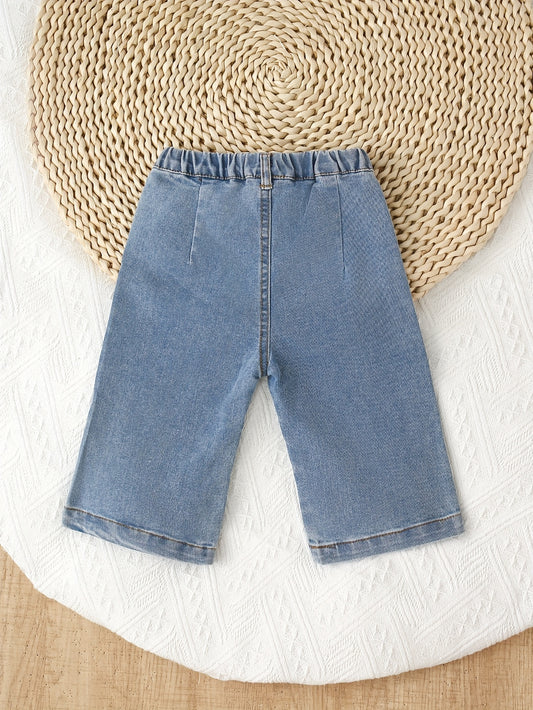 Breezy Comfort, Girls' Casual Solid Color Denim Jeans - Cotton, Machine Washable for Spring/Summer