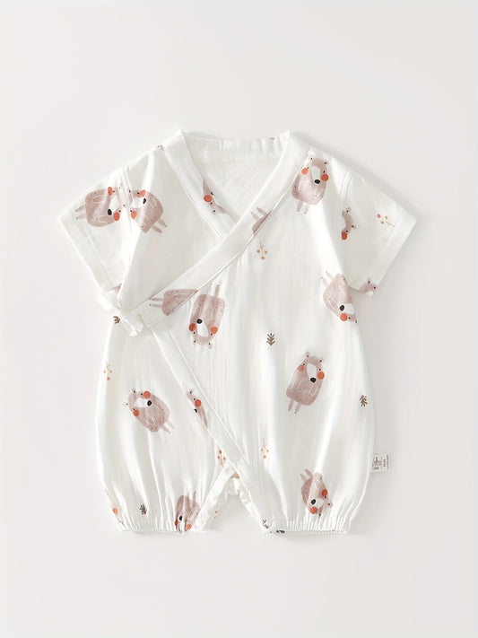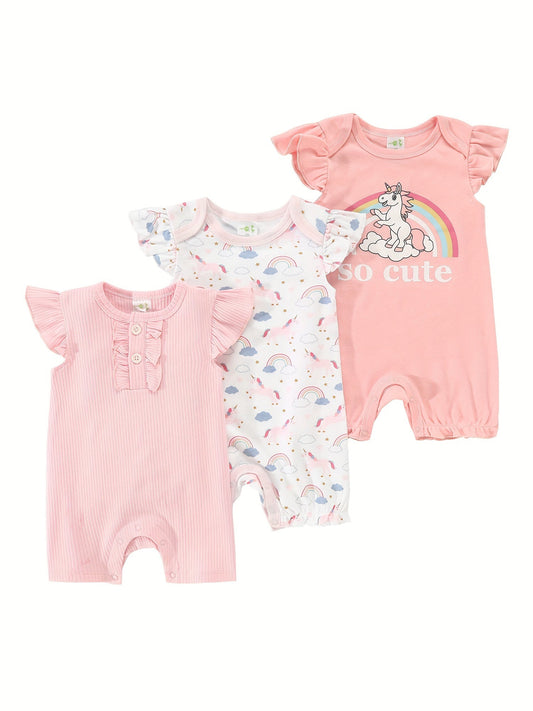 Boho Cartoon Print Baby Romper Set - 3pcs