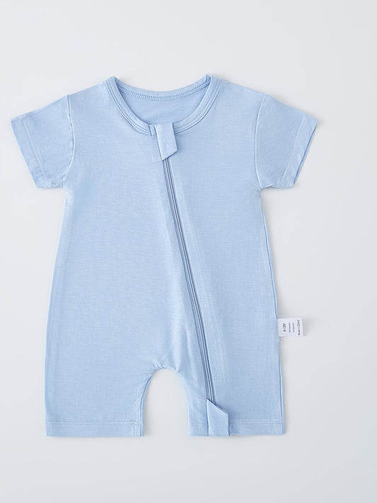 Bamboo Fiber Short Sleeve Summer Romper - Light Blue