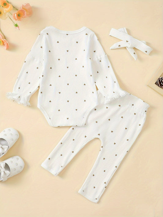 Toddler Cartoon Heart Bodysuit & Pants Set