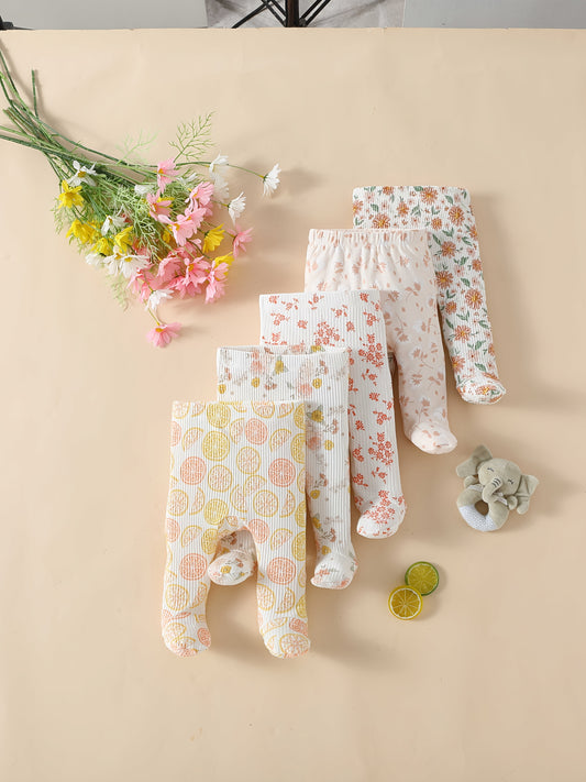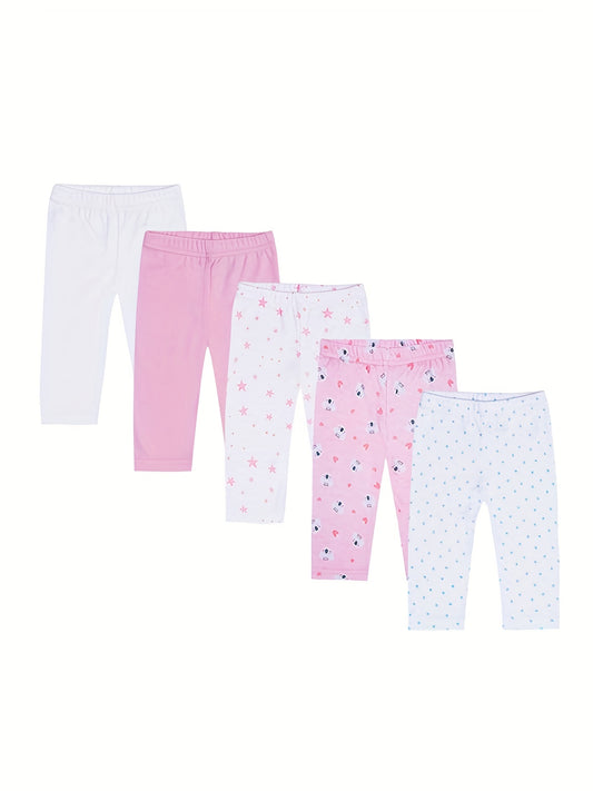 5pcs Unisex Baby Cotton Pants, Soft Knit Fabric, Regular Fit, Casual Style, with Geometric Patterns, for All-Season Baby Trousers with Slight Stretch, for Outdoor