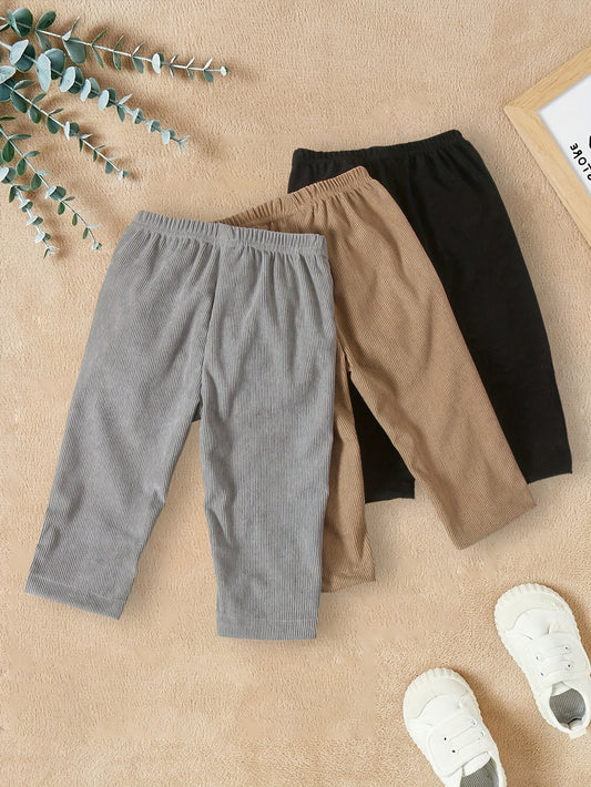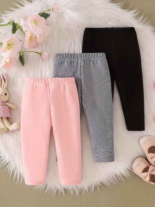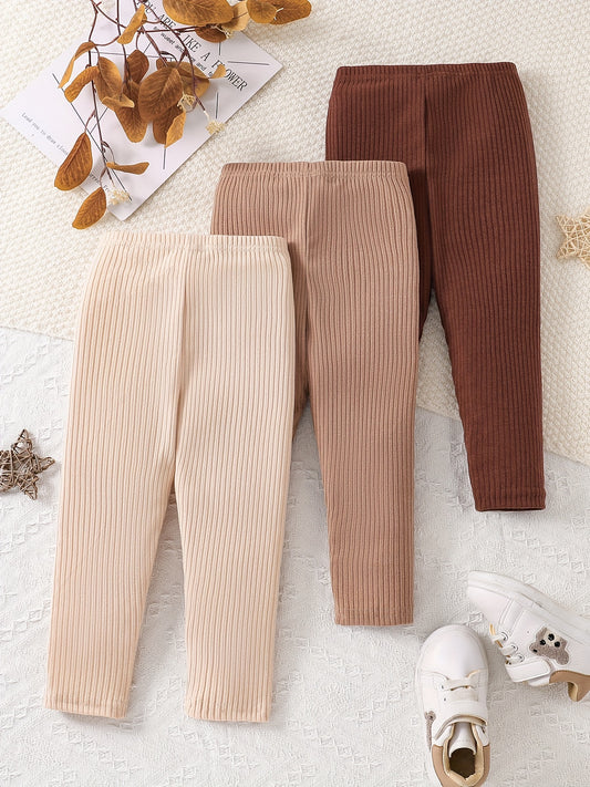 3-Pack Autumn and Winter Girls' Casual Pants Set, Fashionable Simple Solid Color Elastic Waist Long Pants for Girls, Comfortable Soft Winter Trousers, Versatile Everyday Basic Outfit for Toddlers, Warm Outdoor Clothing for Kids, Perfect for Outdoor