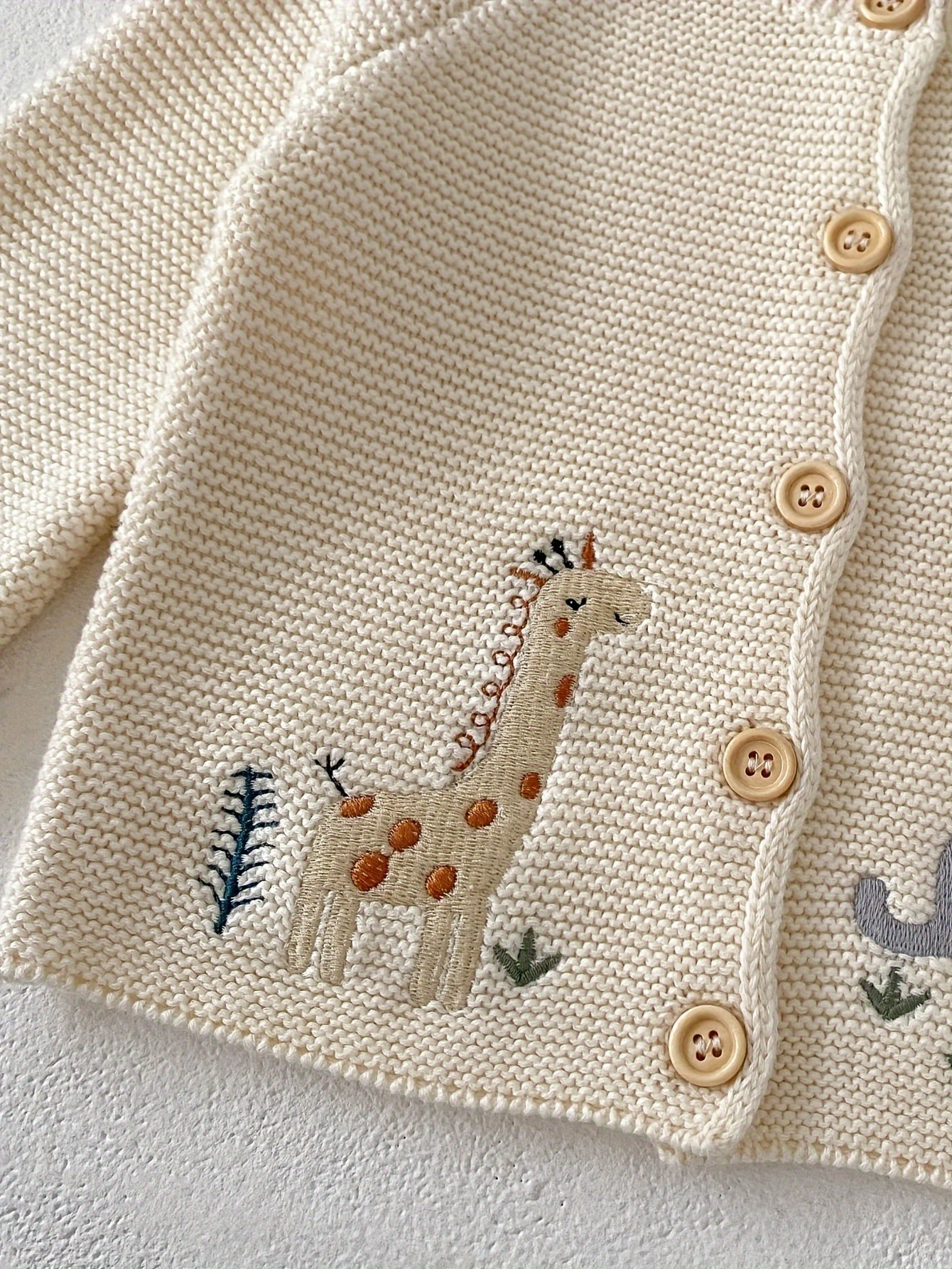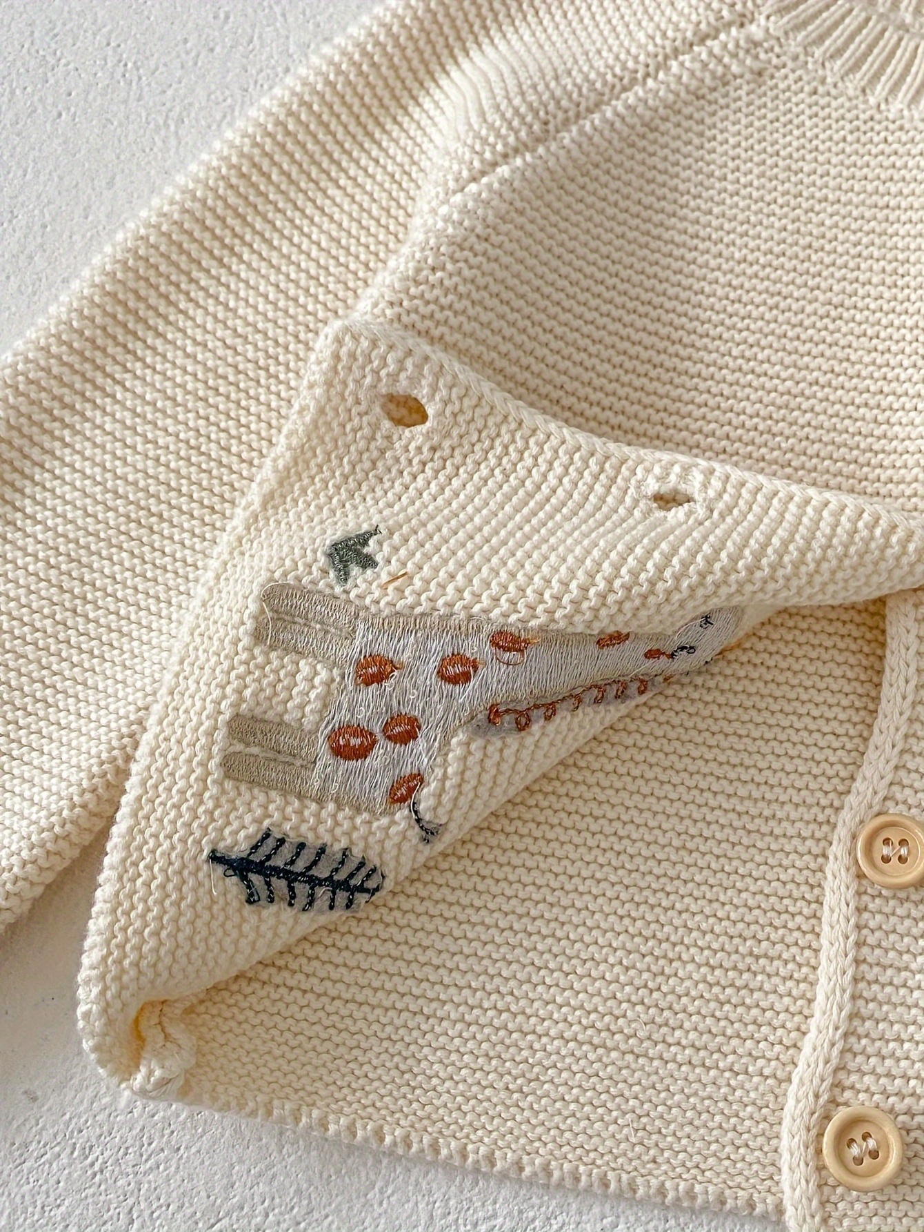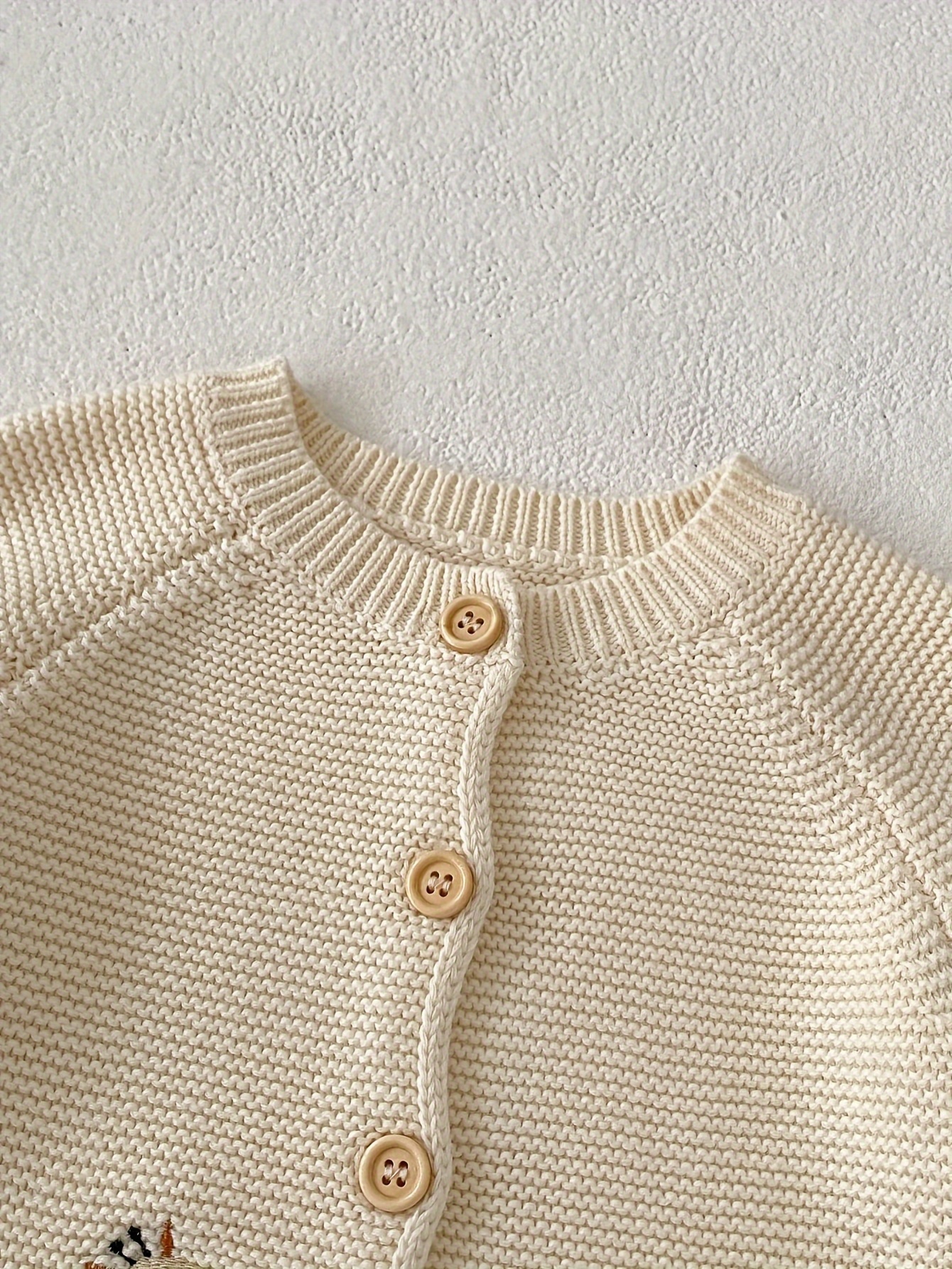 Adorable Cartoon Embroidery Knit Cotton Cardigan for Baby Girls, Crew Neck Long Sleeve Knitted Sweater with Slight Stretch, Regular Fit for Spring/Fall - 100% Cotton