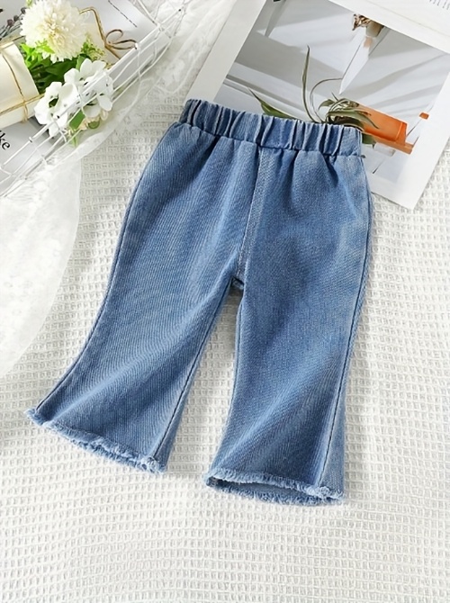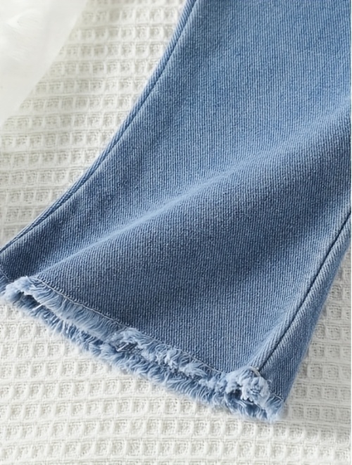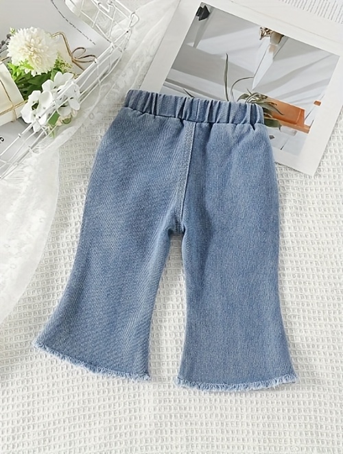Chic & Comfy Girls' Bell Bottom Denim Jeans - Rayon Blend, Tassel Detail, Perfect for Spring/Summer