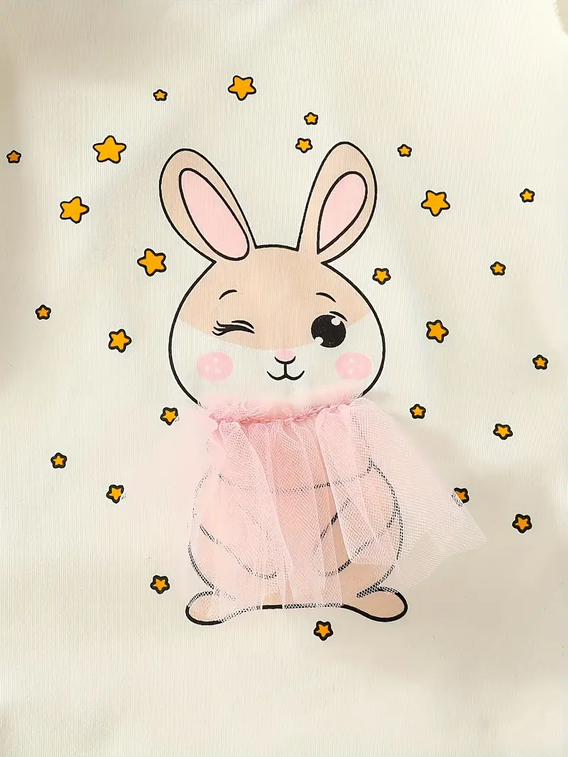 Cute Baby Girl Rabbit Print Long Sleeve Set