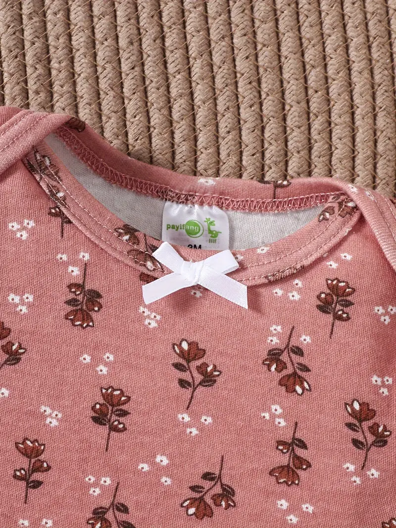 Bloom with style! 🌼 What it is - Discover our adorable three-piece baby girl jumpsuit set featuring a charming reddish-brown solid one-piece and two delightful floral-patterned pieces. Crafted from high-quality cotton, this collection is designed for ultimate comfort and cuteness! 💖 Why you need it - - Made from soft, breathable fabrics, keeping your baby comfortable all day. - Versatile floral patterns perfect for spring and summer outings. - Easy to mix and match, allowing for multiple adorable outfit combinations. - Machine washable for hassle-free care. 🌟 Why you love it - - Premium quality cotton blend ensures durability while feeling gentle on delicate skin. - The trendy design keeps your baby looking stylish and picture-perfect. - Designed with a comfortable fit for on-the-go adventures, ensuring maximum playtime fun. Simply dress your little one in any combination of the pieces for a cute outfit ready for playdates, family gatherings, or outdoor adventures. Plus, our jumpsuit set comes with a satisfaction guarantee! Grab this exclusive floral jumpsuit set while supplies last and give your baby the adorable style she deserves!