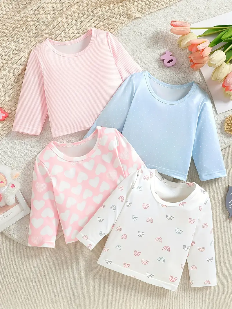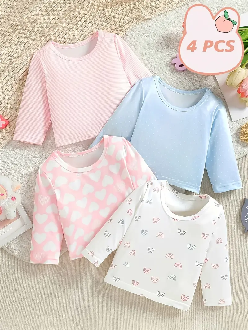🎉 What it is - Elevate your little one's wardrobe with our adorable Girls' T-Shirt Set, featuring a trendy crew neck and charming heart and dot designs. Crafted from a comfy blend of 95% Polyester and 5% Elastane, this four-piece set is perfect for school or festive occasions, ensuring your girls look fashionable and feel great! 🌟 Why you need it - This essential set is designed with your child's comfort and style in mind. Here’s why customers can’t get enough: - Soft and stretchy fabric for all-day comfort - Versatile styles perfect for school, playdates, or holidays - Easy to care for – simply hand wash or dry clean - Designed for children aged 0-3 years old, ensuring a perfect fit for your little one! 💖 Why you love it - Moms adore this t-shirt set for several reasons: - Unique and playful prints that stand out - Ideal layering option for transitional seasons - A stylish way to keep your youngsters looking cute without sacrificing comfort - Affordable and great value with four coordinating pieces in one set! 👗 How to use it - Pair these charming tees with your little one's favorite pants or skirts for a cute outfit. Mix and match with different accessories to create unique looks that your child will love! ✅ Satisfaction Guaranteed! Add this must-have Girls' T-Shirt Set to your cart today and let your girls shine in style. Limited stock available!