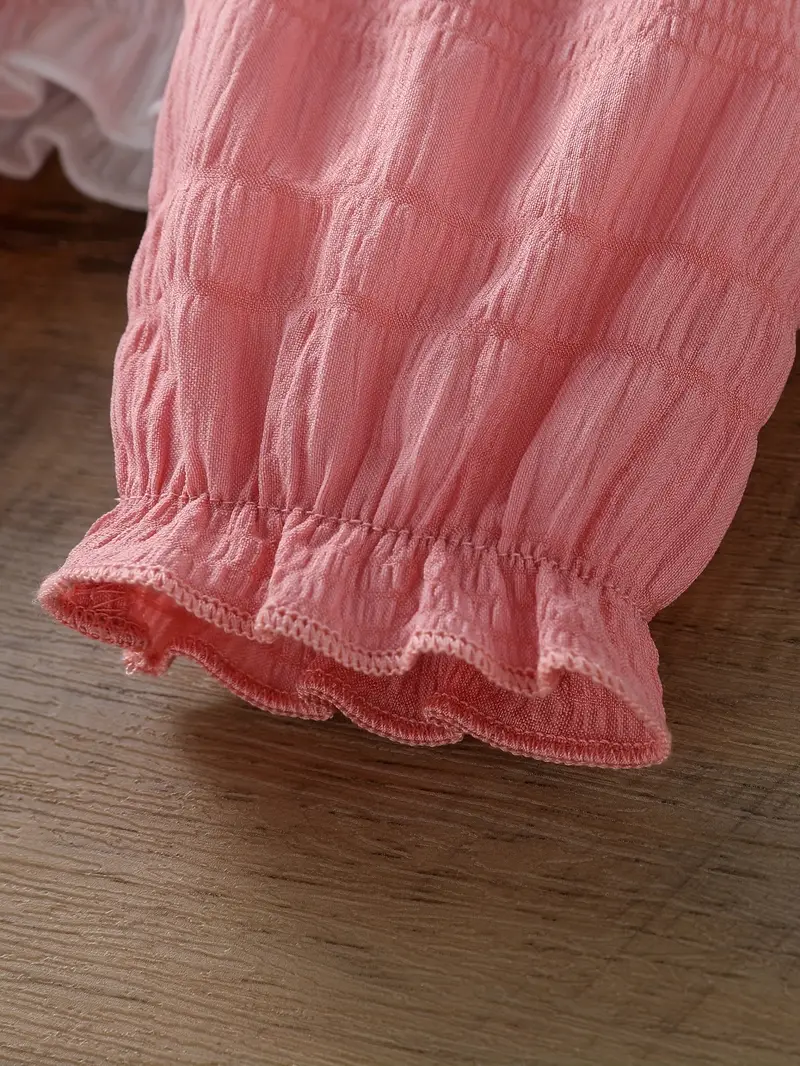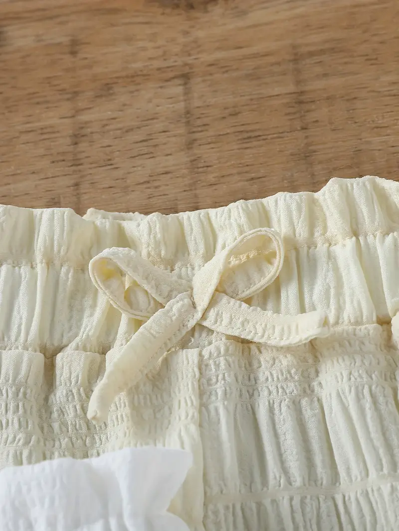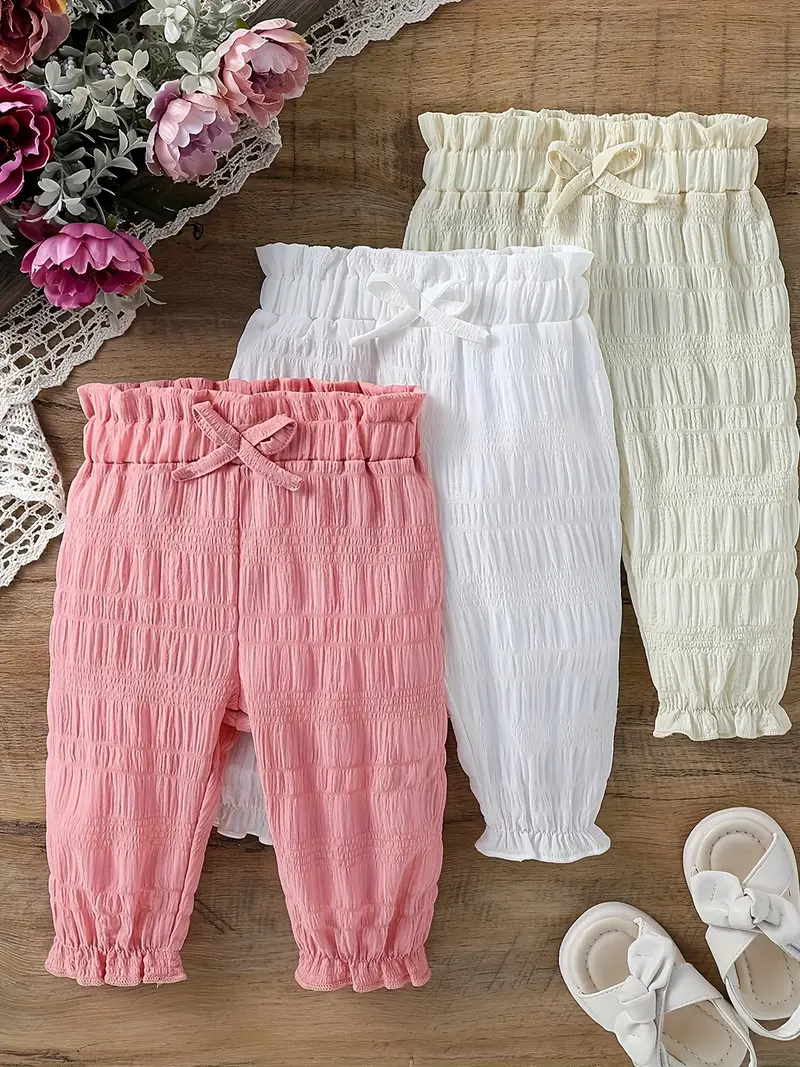 Girls' Summer Thin Solid Color Baby Air-Conditioned Mosquito Repellent Bowknot Casual Long Pants Three-Piece Set, Perfect for Outdoor