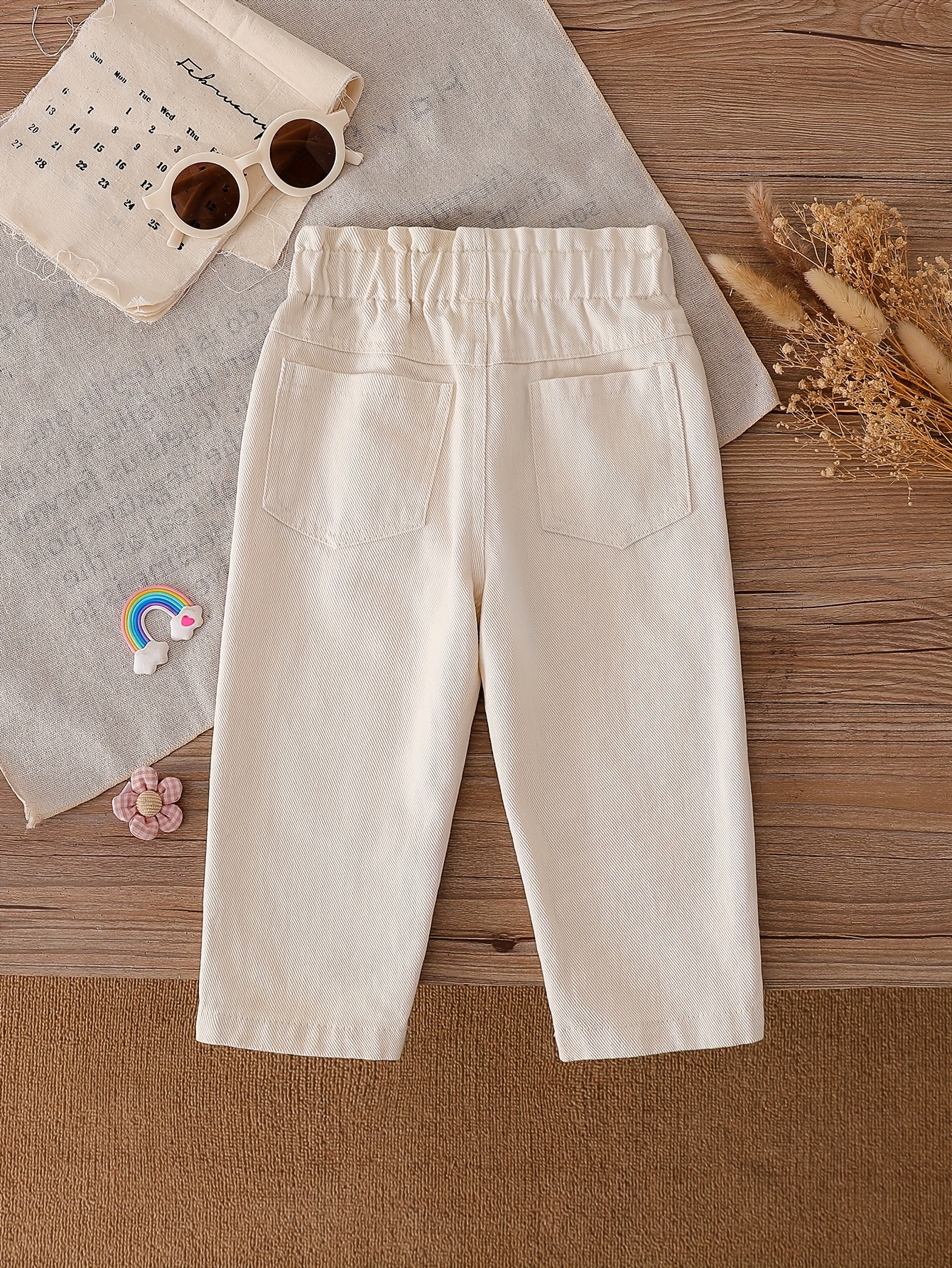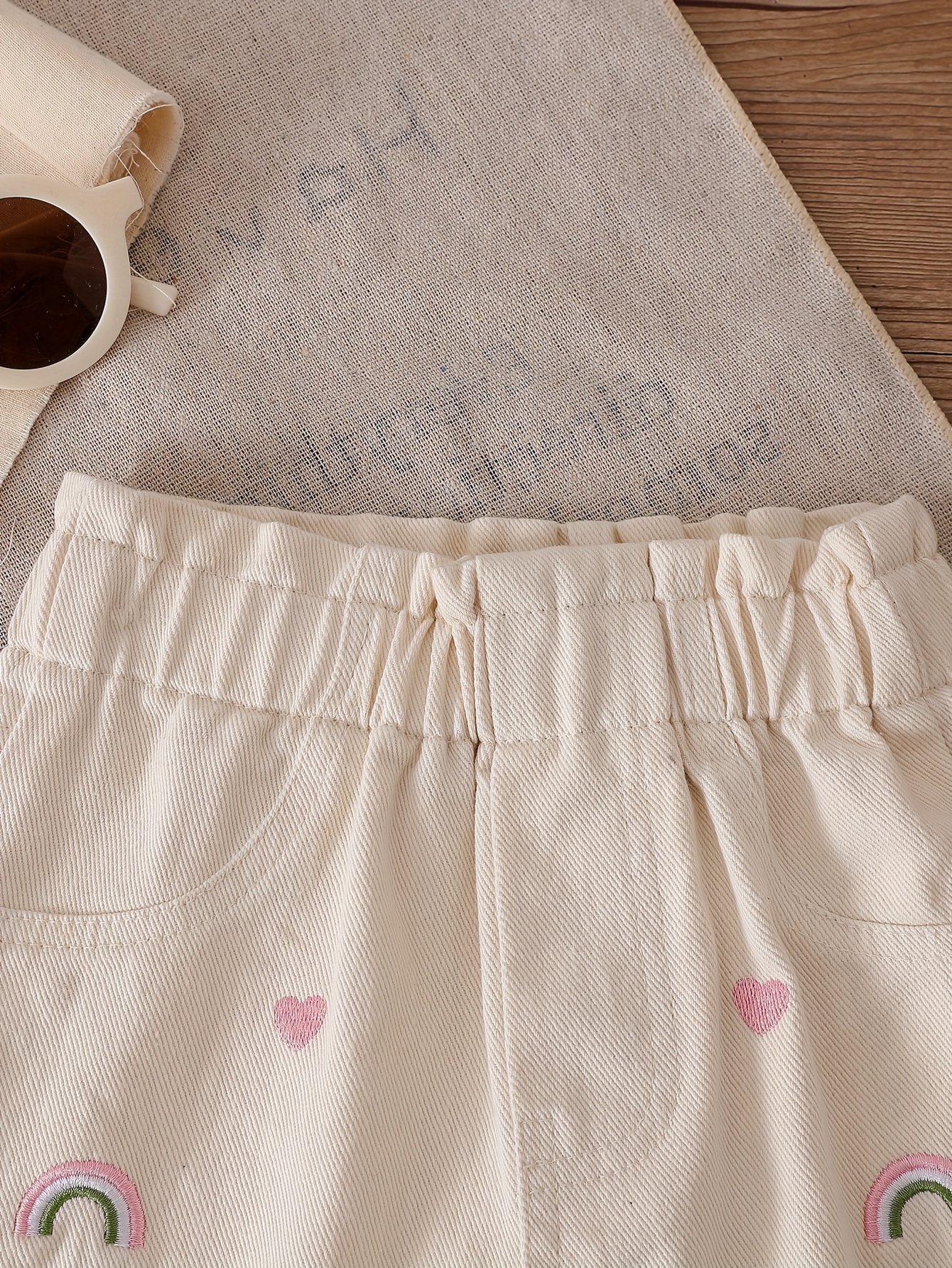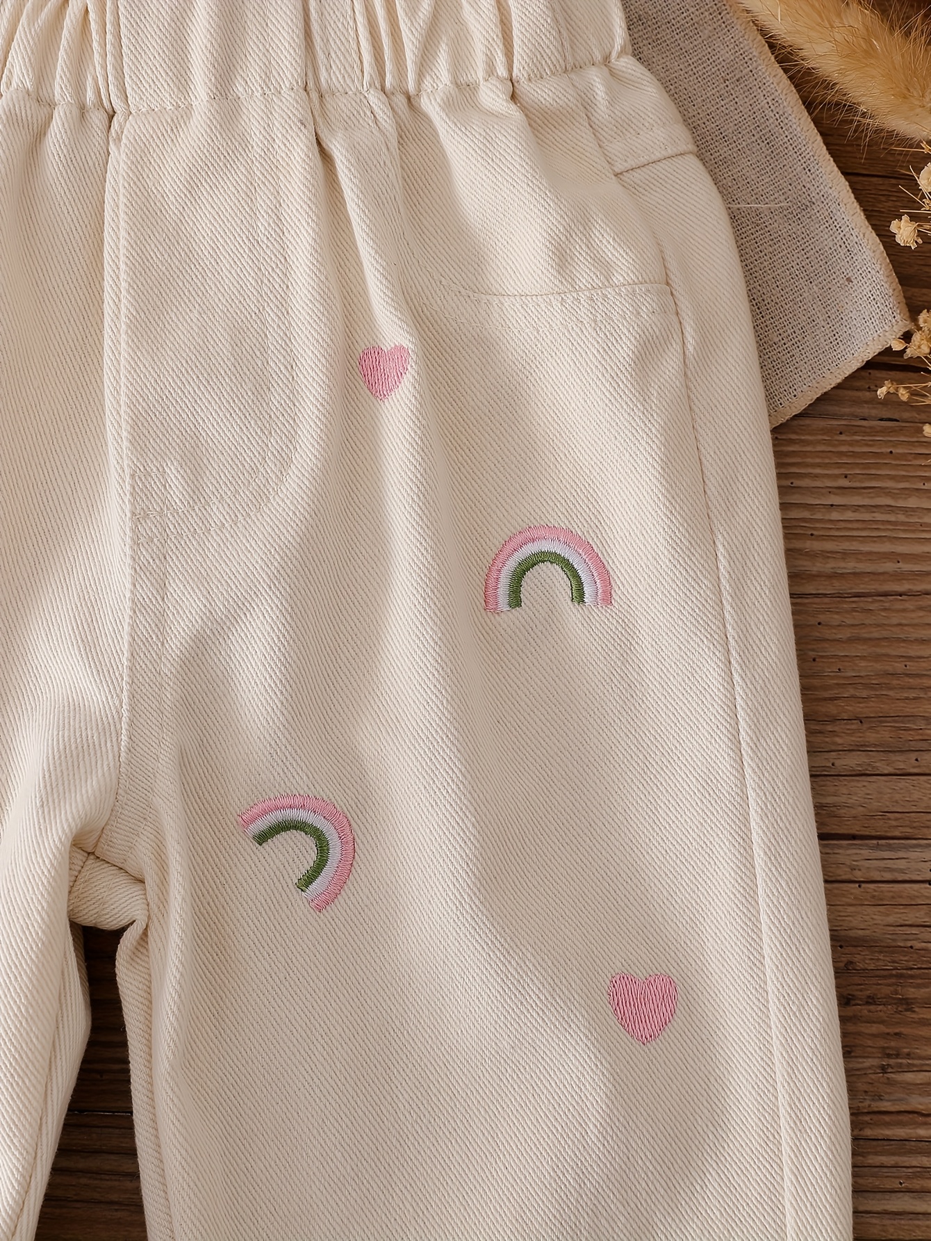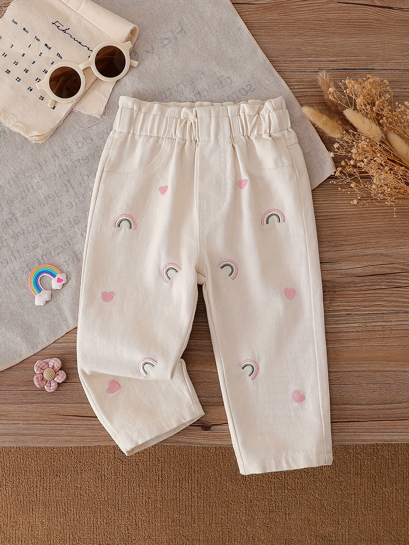 1 st. söta tecknade broderade flickjeans, bekväm normal passform, året runt, mjuka och moderiktiga, perfekta för babyflickor, vardagskläder, trendig stil